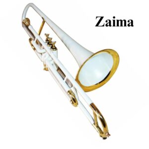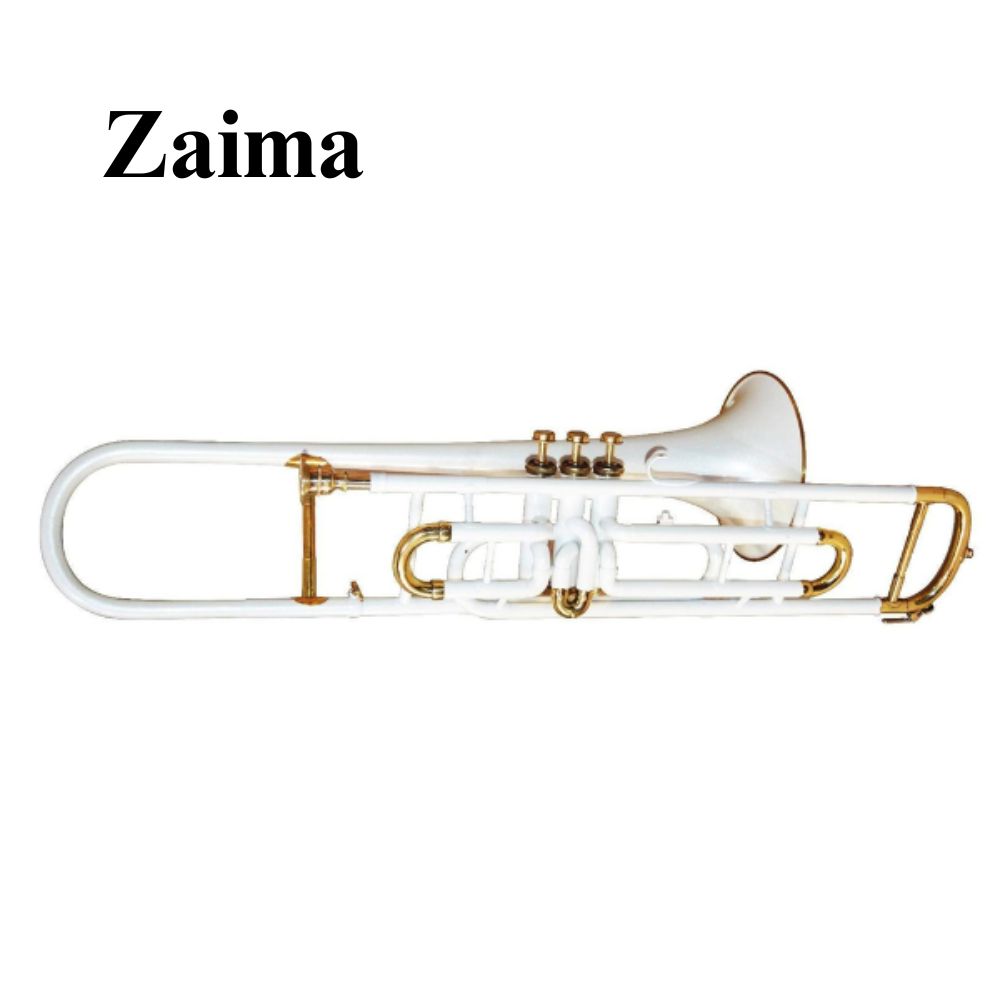 The Zaima Brass Valve Trombone in White Lacquered with Brass Finish is a high-quality, handcrafted instrument designed for students, professional musicians, and marching or orchestral performers. Made from premium brass, it features a sleek white lacquer combined with a polished brass finish, offering both durability and an elegant appearance. Measuring approximately 82 cm in length with a horn width of 17 cm, this trombone delivers a rich, resonant tone with excellent projection and precise intonation, making it ideal for practice, concerts, and marching bands.