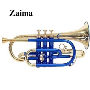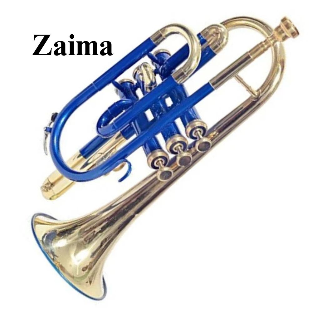 The Zaima Cornet Trumpet in Bb is a beautifully handcrafted brass instrument designed for musicians who value quality, tone, and aesthetics. Featuring a stunning Blue Lacquered body combined with a polished brass finish, this cornet offers both visual appeal and long-lasting durability. Its compact structure—33 cm in length with an 11 cm bell diameter—delivers excellent projection, warm resonance, and accurate intonation, making it ideal for school bands, orchestras, and marching performances.