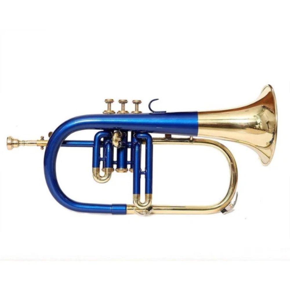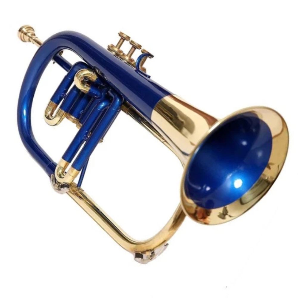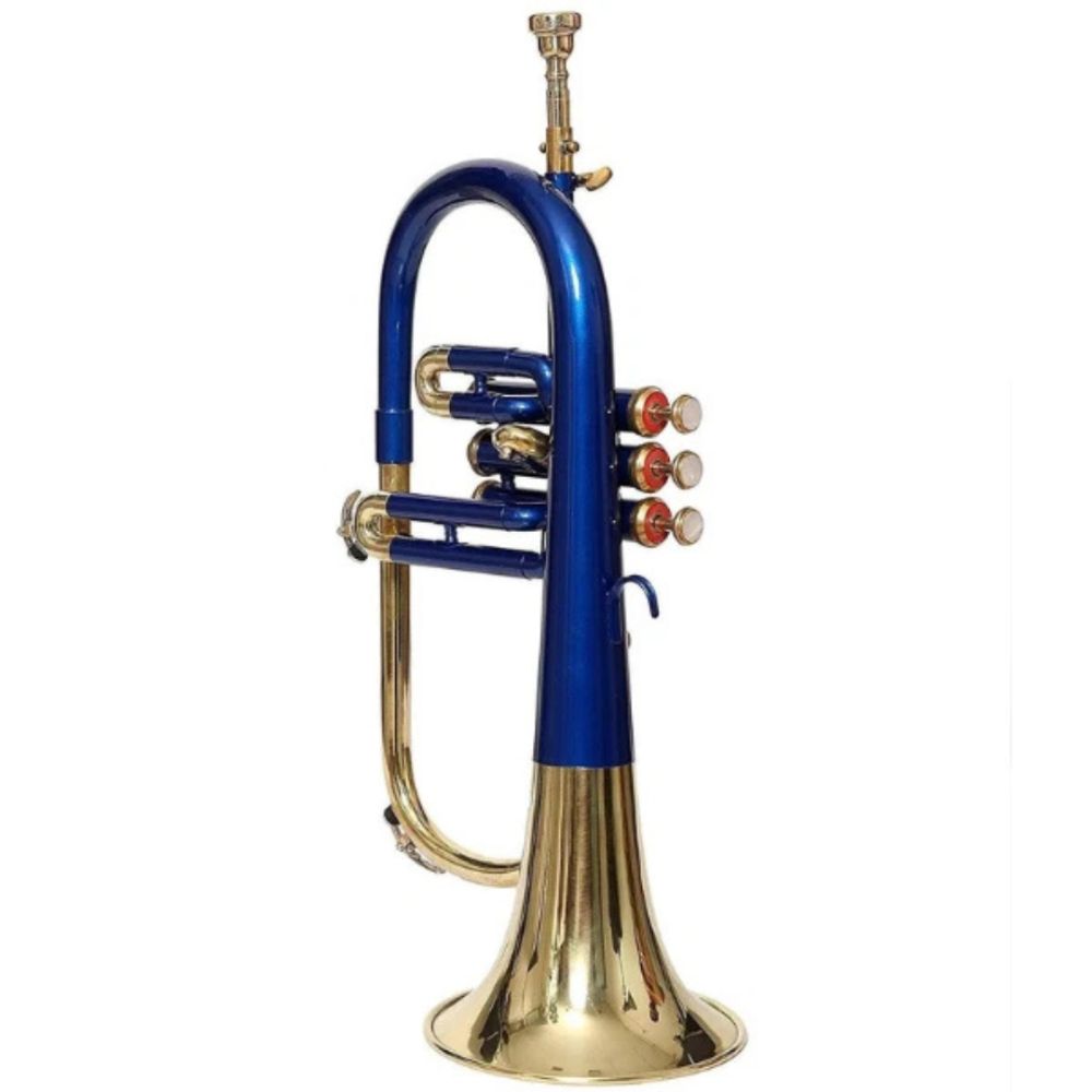 The Zaima Flugelhorn 3 Valve in Brass, Bb is a premium handmade instrument crafted for musicians who value warm tone, smooth airflow, and exceptional build quality. Designed with a stunning Blue Lacquered + Brass Finish, it delivers a professional look along with rich, mellow sound ideal for students, performers, and marching band artists.