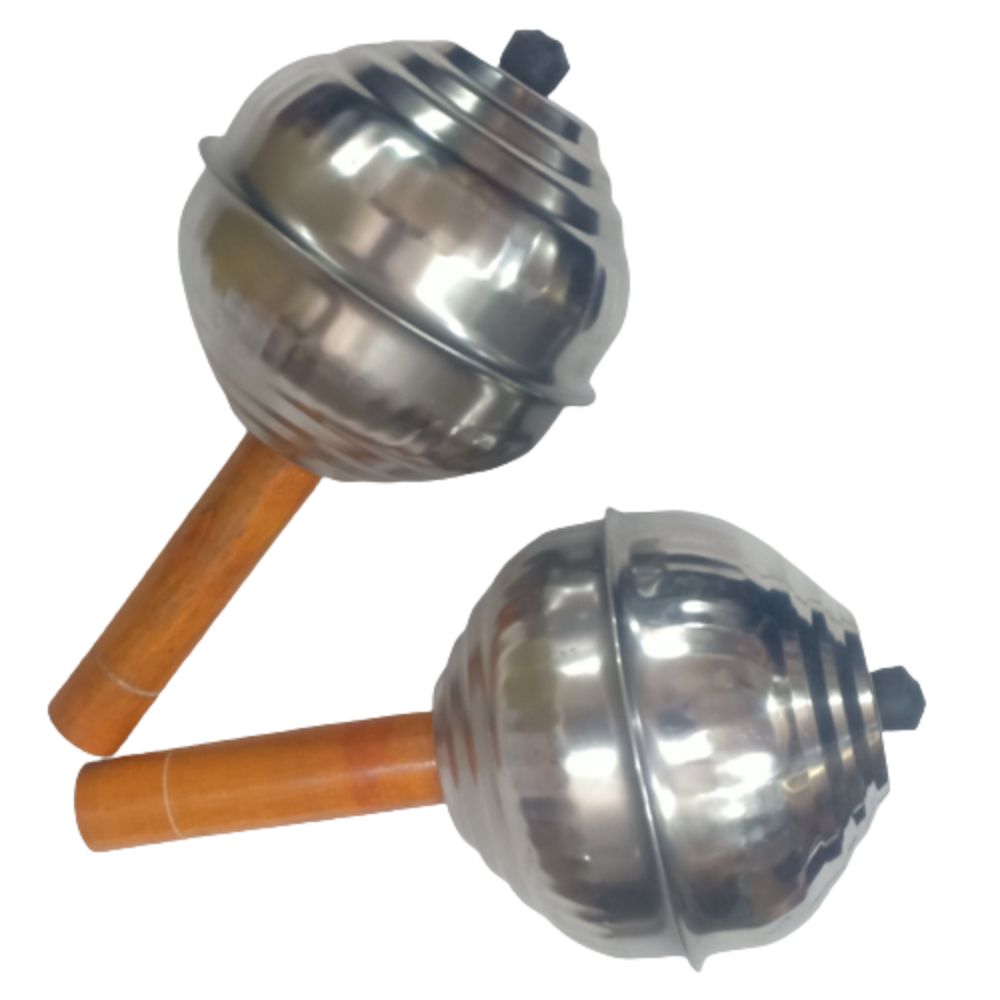 The Zaima Maracas / Jhunjhuna / Junjuna / Shakers Hand Percussion Cymbals – Meerut Model – are expertly crafted to deliver bright, rhythmic, and lively sounds for every performance. This Pack of 2 includes 5-inch and 5.5-inch,,6-inch and 6.5-inch sizes, making it suitable for both beginners and professional musicians. The head part is made of high-quality stainless steel in an elegant silver finish, ensuring durability, resonance, and a crisp tone. The yellow wooden handle adds a cheerful touch, providing both comfort and a secure grip for long playing sessions.