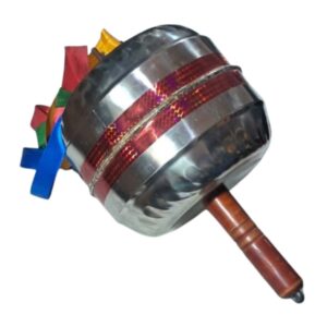 The Zaima Maracas / Jhunjhuna / Junjuna / Shakers Hand Percussion Cymbals – Special Big Size Edition are expertly crafted to deliver bold, rhythmic, and vibrant sound for powerful musical performances. This Pack of 2 includes large sizes –12 inch, perfect for professional musicians, folk performers, and cultural artists. The head part is made of premium stainless steel in an elegant silver color, ensuring rich sound resonance, durability, and long-lasting shine. The natural wooden handle provides a strong, comfortable grip, while the colorful ribbons in red, yellow, and blue add a festive and decorative charm.