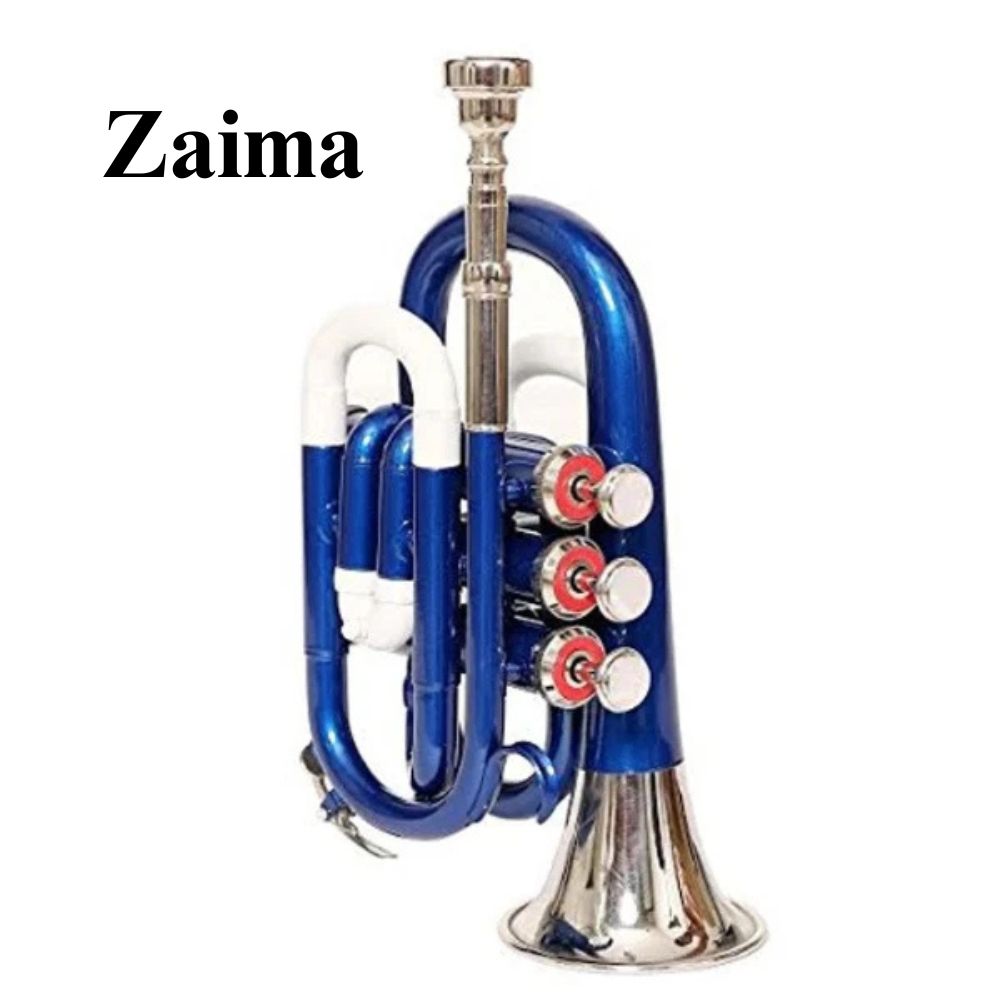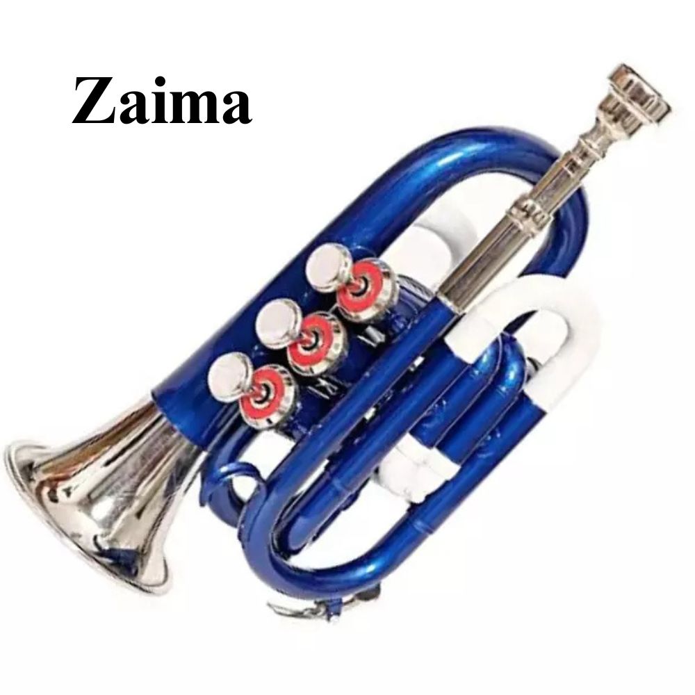 The Zaima Pocket Trumpet in Bb is a compact, high-quality instrument designed for musicians who want portability without compromising on sound performance. Handmade from premium brass, it features a striking Blue/White Lacquered body with a Nickel Plated finish, combining durability with an elegant and modern appearance. Measuring 20 cm in length with an 8 cm bell diameter, this pocket trumpet produces a bright, clear, and resonant tone similar to a full-size trumpet, making it ideal for practice, travel, marching bands, and performances.