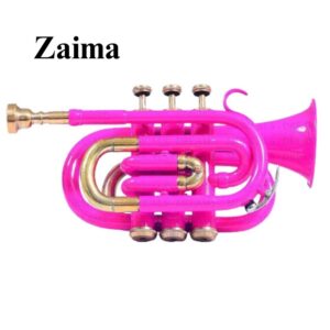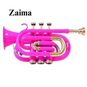 The Zaima Pocket Trumpet in Bb is a compact and beautifully handcrafted instrument designed for musicians seeking portability, style, and superior sound quality. Made from premium brass, it features a vibrant Pink Lacquered body with a polished Brass finish, offering both elegance and long-lasting durability. Despite its small size—20 cm in length with an 8 cm bell diameter—this pocket trumpet produces a bright, clear, and resonant tone comparable to a full-size trumpet, making it perfect for practice, travel, marching bands, and performances.