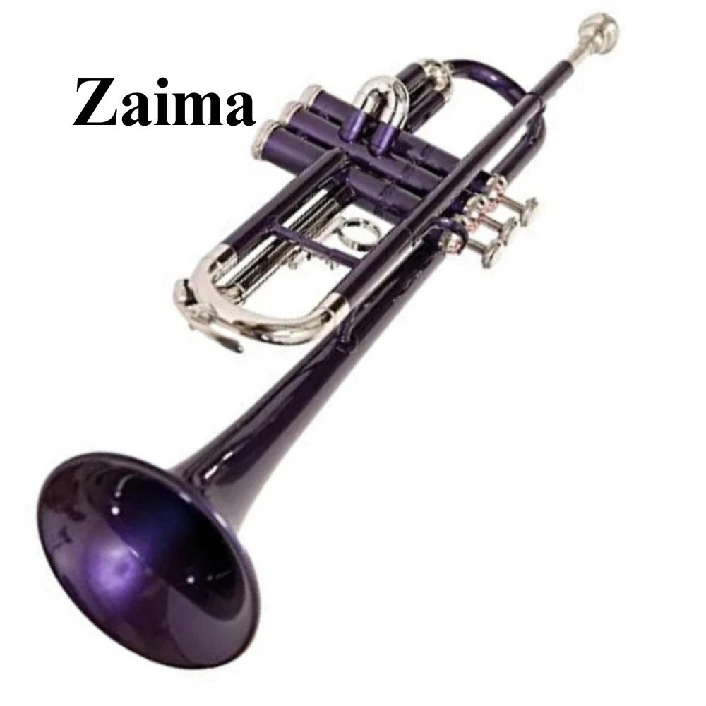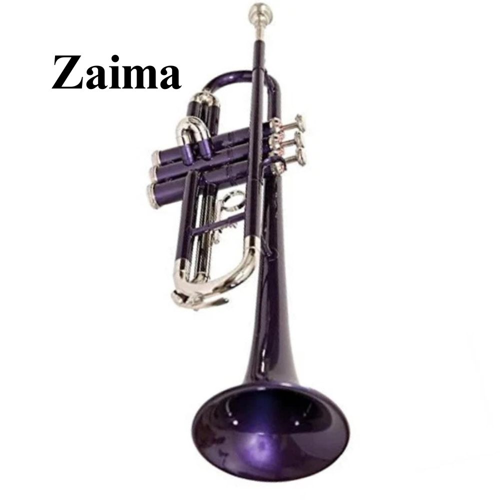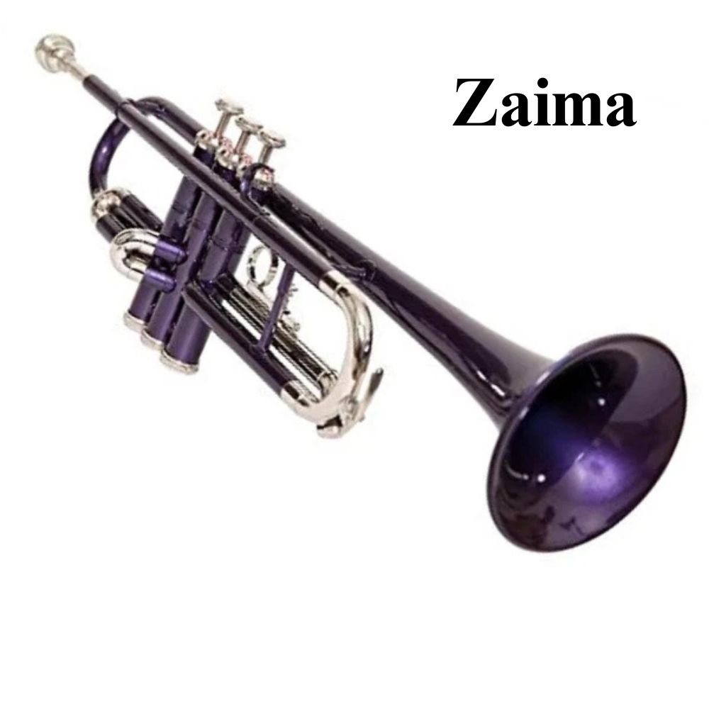 The Zaima Brass Bb Trumpet, finished in an elegant purple lacquer with a classic brass finish, is a beautifully crafted musical instrument designed for students, professionals, marching bands, and hobby musicians. Manufactured by Al Yumna Overseas Pvt. Ltd., this trumpet combines modern style with traditional craftsmanship to deliver a rich, resonant sound. With a length of 47.5 cm and a bell diameter of approximately 11 cm, it ensures excellent sound projection and clarity.