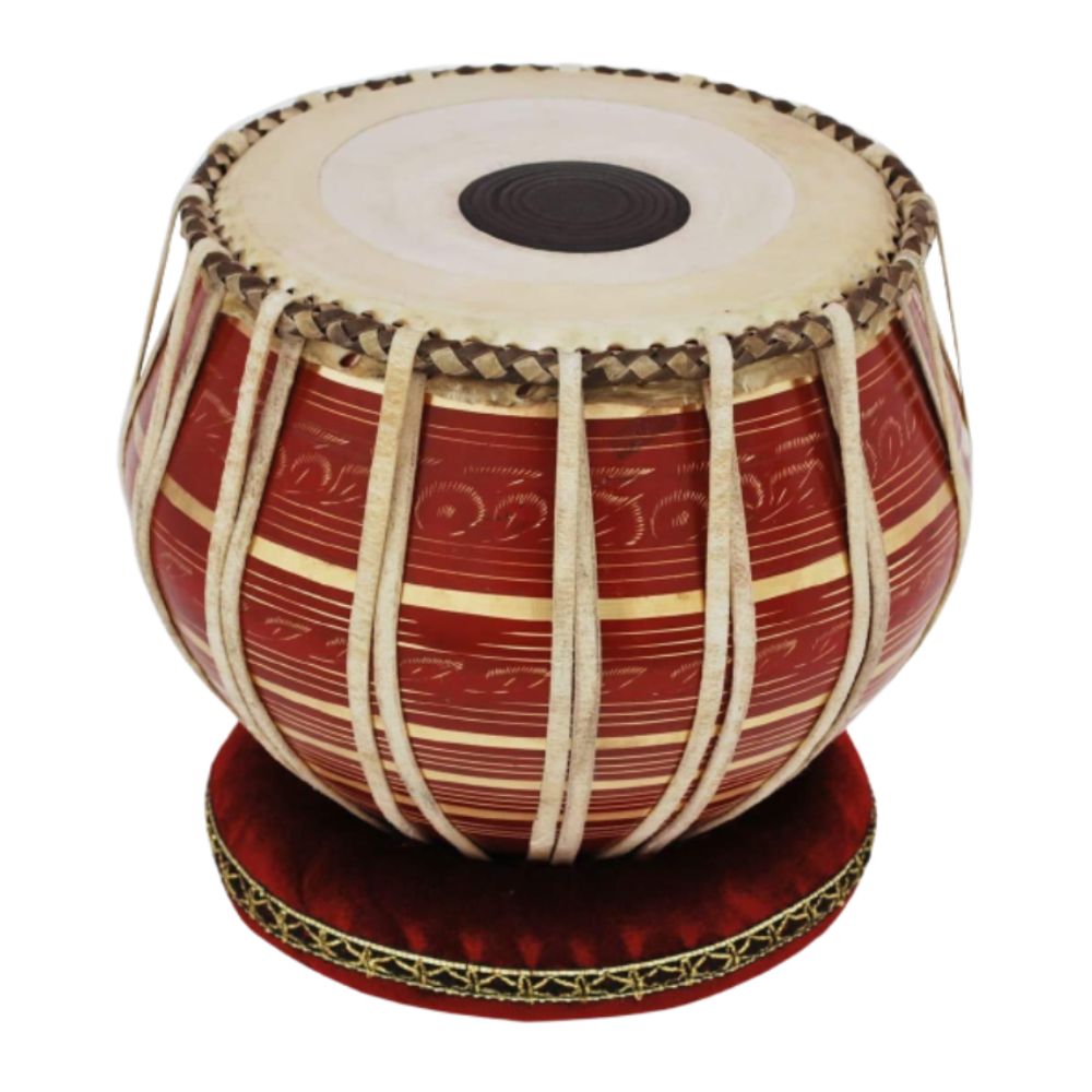 The Tabla Drum Set Brass in Red Color by Brand Zaima is a premium handcrafted musical instrument designed for students, professionals, and stage performers who demand superior sound clarity and long-lasting durability. This high-quality set includes a 4 kg Red Brass Bayan that produces deep, resonant bass tones and a Sheesham Wooden Dayan known for its sharp, crisp treble notes. The leather heads measure 9–9.25 inches on the Bayan and 5–5.5 inches on the Dayan, ensuring perfect tonal balance for classical, folk, devotional, and studio performances.