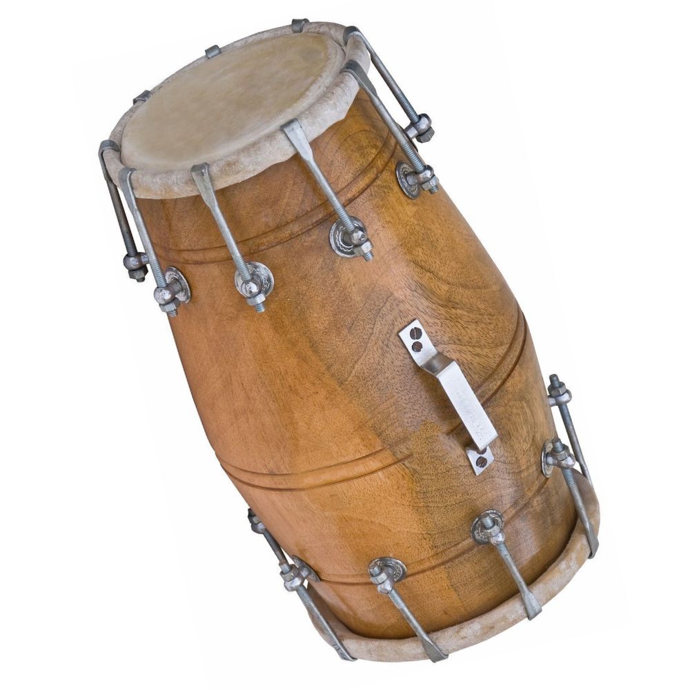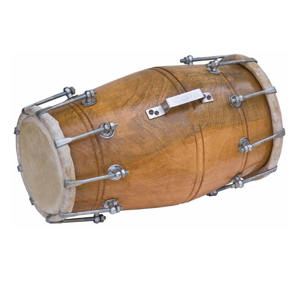 The nut and bolt tuning system ensures precise pitch control and easy adjustment, making it ideal for professional musicians and learners alike. Finished in an elegant brown polish, the dholak showcases fine craftsmanship and durability. Whether used in Bhajans, Kirtans, traditional folk performances, or as a décor piece for your home or studio, this instrument adds both beauty and melody to any setting.