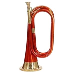 The Zaima Bugle in copper/brass with a red lacquered and brass finish is a beautifully crafted musical instrument that blends elegance, durability, and superior sound quality. The red lacquered finish not only adds a striking visual appeal but also protects the bugle from corrosion and daily wear, ensuring long-lasting use. Designed for school bands, marching bands, and music enthusiasts, this bugle produces bright, clear, and resonant tones, making it ideal for practice sessions, performances, or ceremonial events. Each instrument comes with a hard case and a high-quality mouthpiece, providing secure storage and excellent playability. Manufactured by Al Yumna Overseas Pvt. Ltd., the Zaima Bugle reflects expert craftsmanship, reliability, and professional-grade quality. Its well-balanced design ensures comfortable handling during extended play.