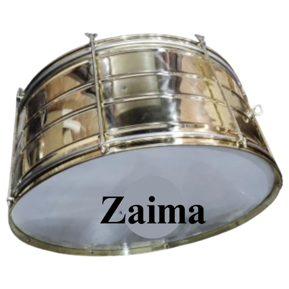 The Zaima Heavy Bass Drum by Al Yumna Overseas Pvt. Ltd. represents the perfect blend of craftsmanship, sound power, and durability. Designed for school bands, army bands, and marching parades, this premium-quality drum is available in 22-inch, 24-inch, 26-inch, and 28-inch sizes. Built with a wide brass shell, it delivers a deep, resonant, and commanding tone that fills open spaces with vibrant energy. The curled rims ensure added strength, safety, and smooth handling, while the screw tension system allows precise tuning for consistent sound performance. Its gleaming brass finish enhances its majestic look, making it a stunning visual centerpiece during performances and parades. Crafted for reliability and long-term use, the Zaima Bass Drum brings professional sound and classic style together.