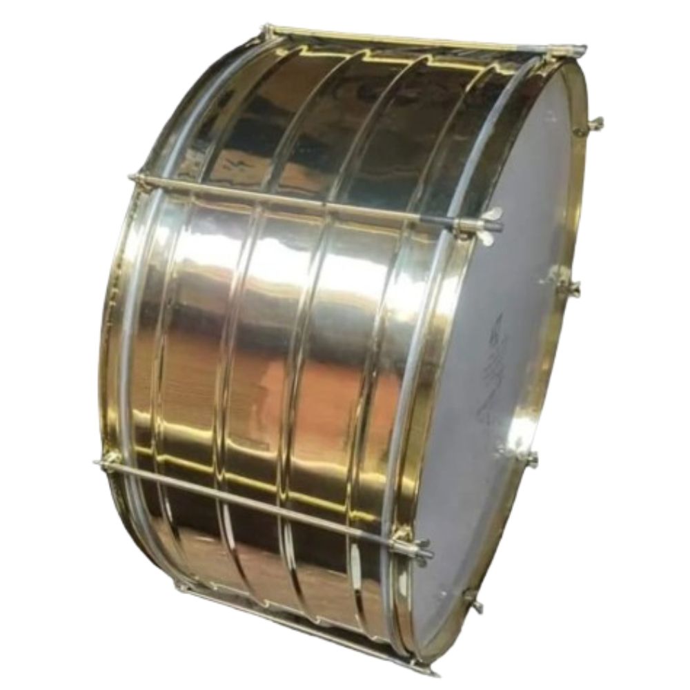 The Zaima Heavy Bass Drum by Al Yumna Overseas Pvt. Ltd. is a masterpiece of craftsmanship, designed to deliver powerful sound and long-lasting durability. Available in 22-inch, 24-inch, 26-inch, and 28-inch sizes, this drum is perfect for school bands, army bands, and marching parades. Constructed with a wide brass shell, it produces deep, rich, and resonant tones that project beautifully in open spaces. The flat rims ensure strong edge support and balanced sound output, while the screw tension system allows for easy and precise tuning. With its polished brass finish, this bass drum not only sounds exceptional but also adds a touch of elegance and tradition to every performance. Designed for musicians who value tone, quality, and appearance, the Zaima Bass Drum is the perfect marching companion.