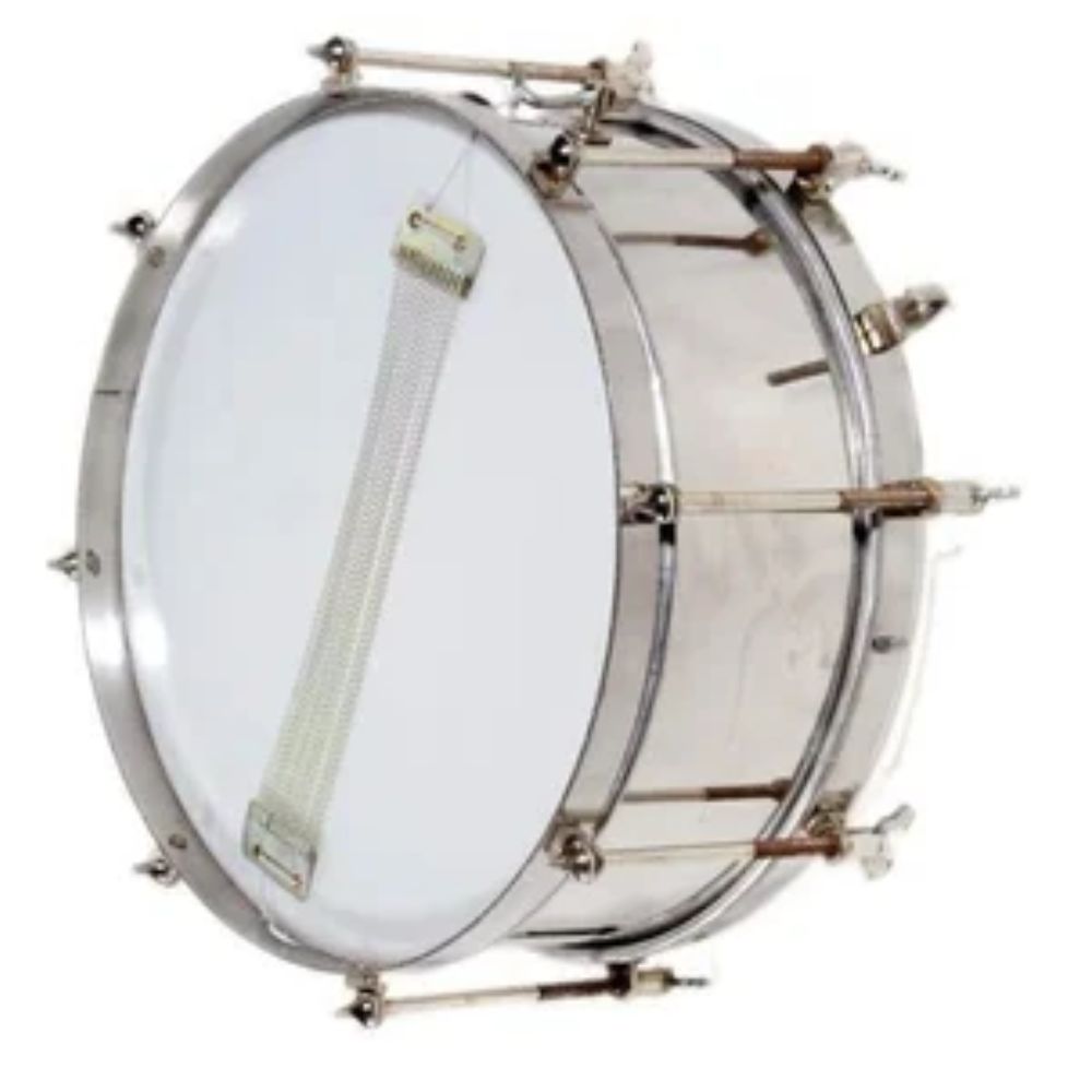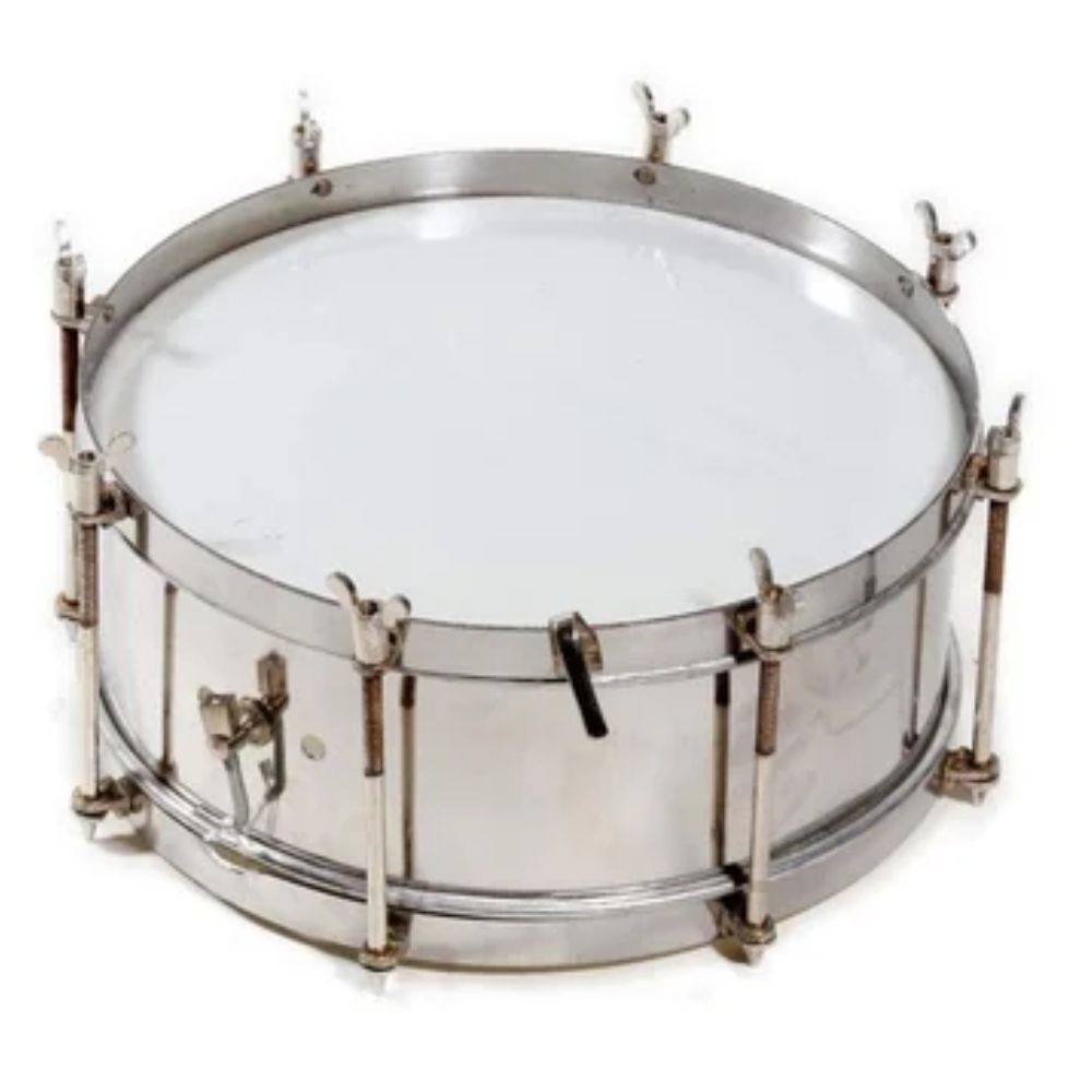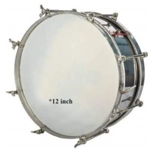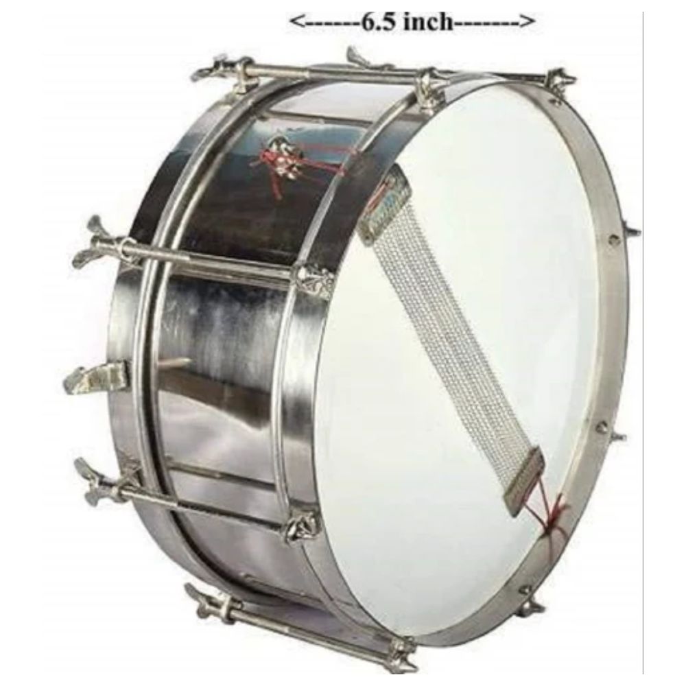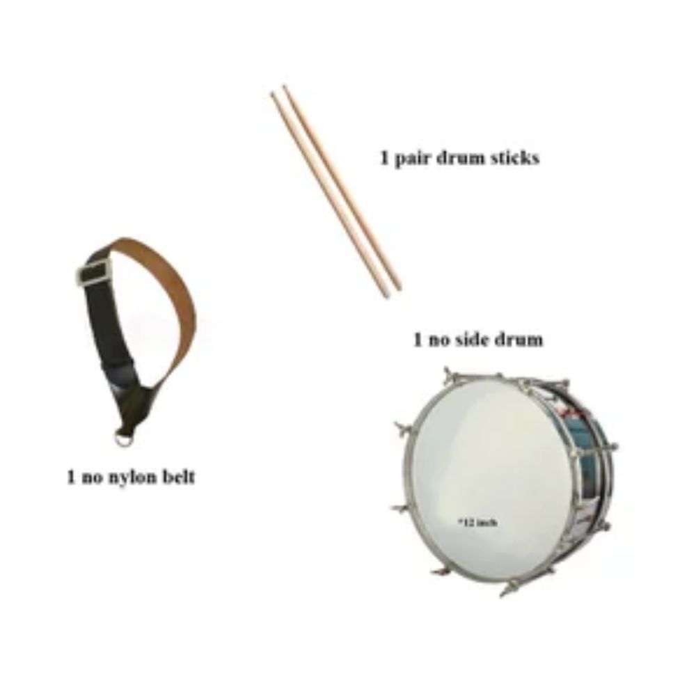 The Zaima Side Drum / PT Drum / Snare Marching Drum is a premium-quality percussion instrument crafted for precision, durability, and superior sound projection. Available in 10-inch, 12-inch, and 14-inch sizes, this drum is made from high-grade stainless steel, offering a long-lasting silver shine and resistance to corrosion. Its flat rims ensure perfect tension and clear, crisp tones that enhance every beat during performances. Designed for school bands, army marching bands, and parades, this side drum combines functionality with a professional aesthetic. It comes complete with wooden sticks and a durable carrying belt, ensuring comfort and ease during long marching sessions. Manufactured by Al Yumna Overseas Pvt. Ltd., under the trusted Zaima brand, this instrument guarantees both quality and style for musicians and marching performers alike.