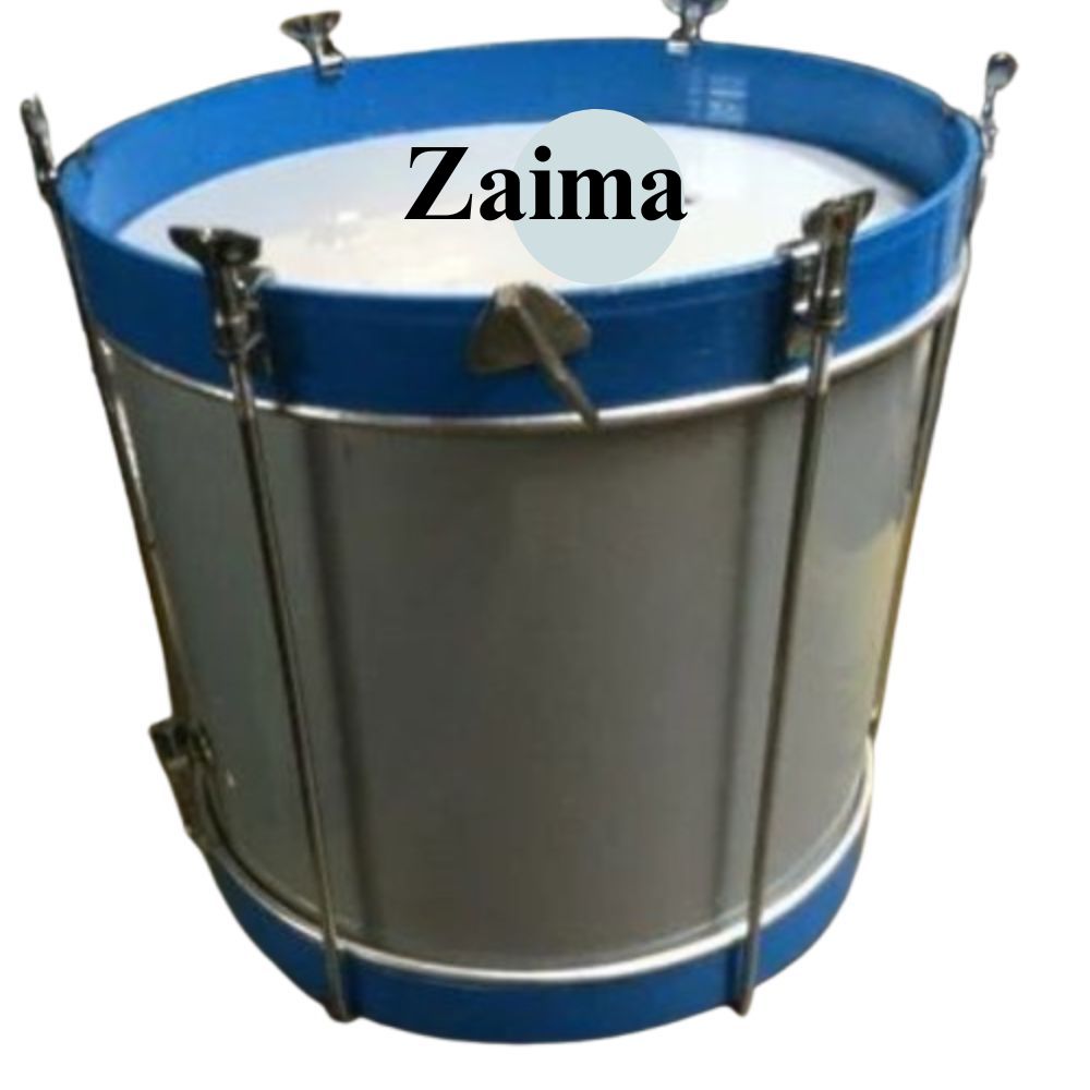 The Zaima Tenor Drum / Marching Drum Heavy is a high-quality percussion instrument designed for precision, durability, and superior sound projection. Available in 14-inch and 18-inch sizes, it features a wide aluminium shell that produces rich, resonant tones ideal for both indoor and outdoor performances. The metallic silver shell paired with blue rims gives the drum a striking, professional look suitable for school bands, army bands, and marching parades.