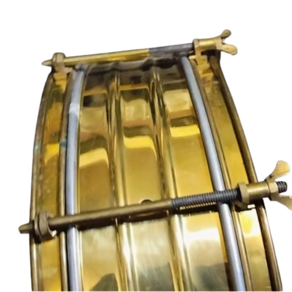 The Zaima Thap Dhol / Marching Drum is a beautifully designed and expertly crafted percussion instrument, made from premium brass metal for powerful sound and long-lasting durability. Ideal for school bands, army bands, and marching parades, this drum produces deep, rich tones that command attention during performances. Available in 16-inch, 18-inch, and 20-inch sizes, it caters to different musical preferences and ensemble requirements.