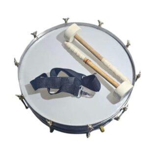 The flat rims provide stable tension and clear tone quality, producing deep, resonant beats that enhance any marching rhythm. Its silver color finish gives it a sleek and professional appearance, making it visually striking during parades and performances. Each drum comes complete with a strong beater and a comfortable marching belt, ensuring convenience and ease of use for musicians during long sessions.